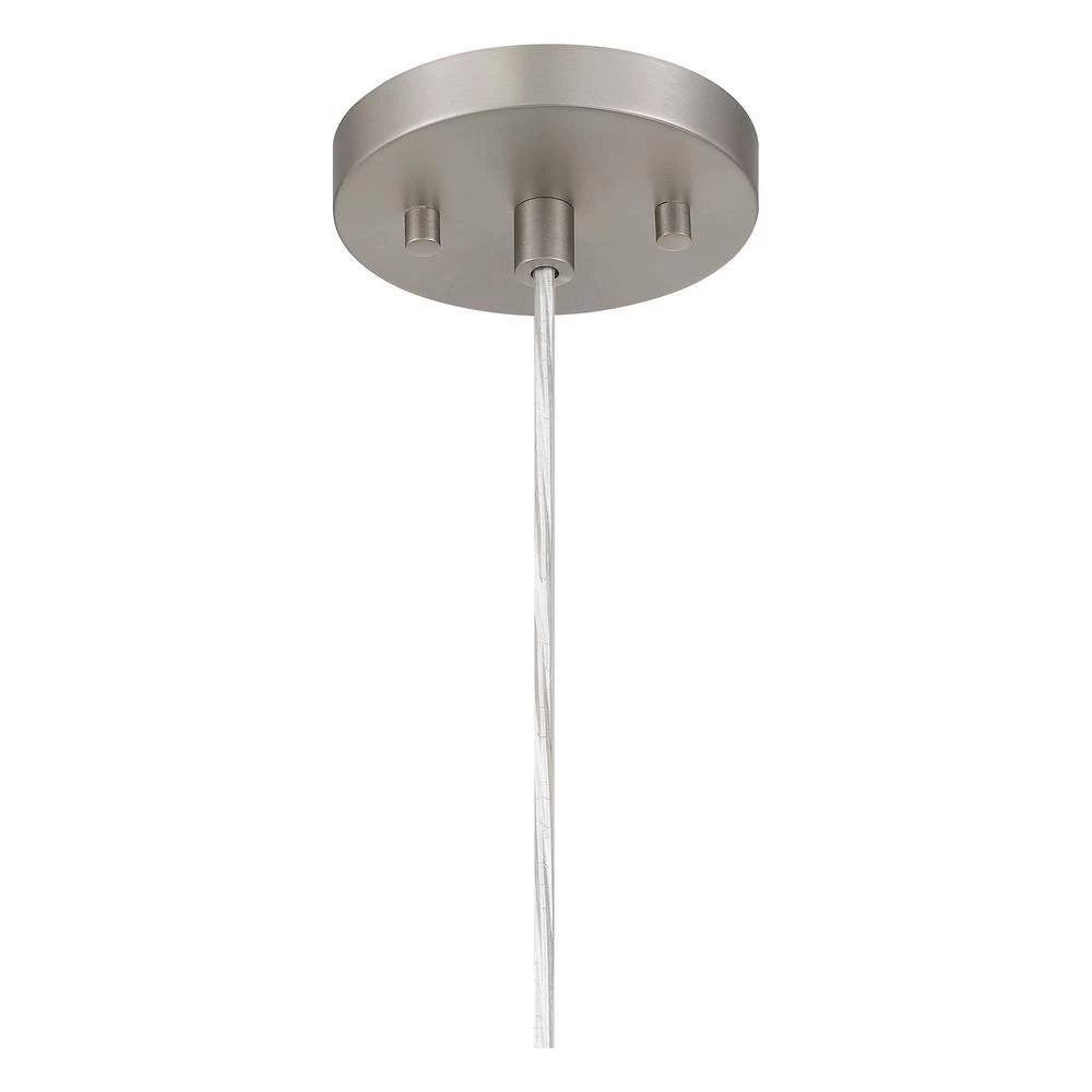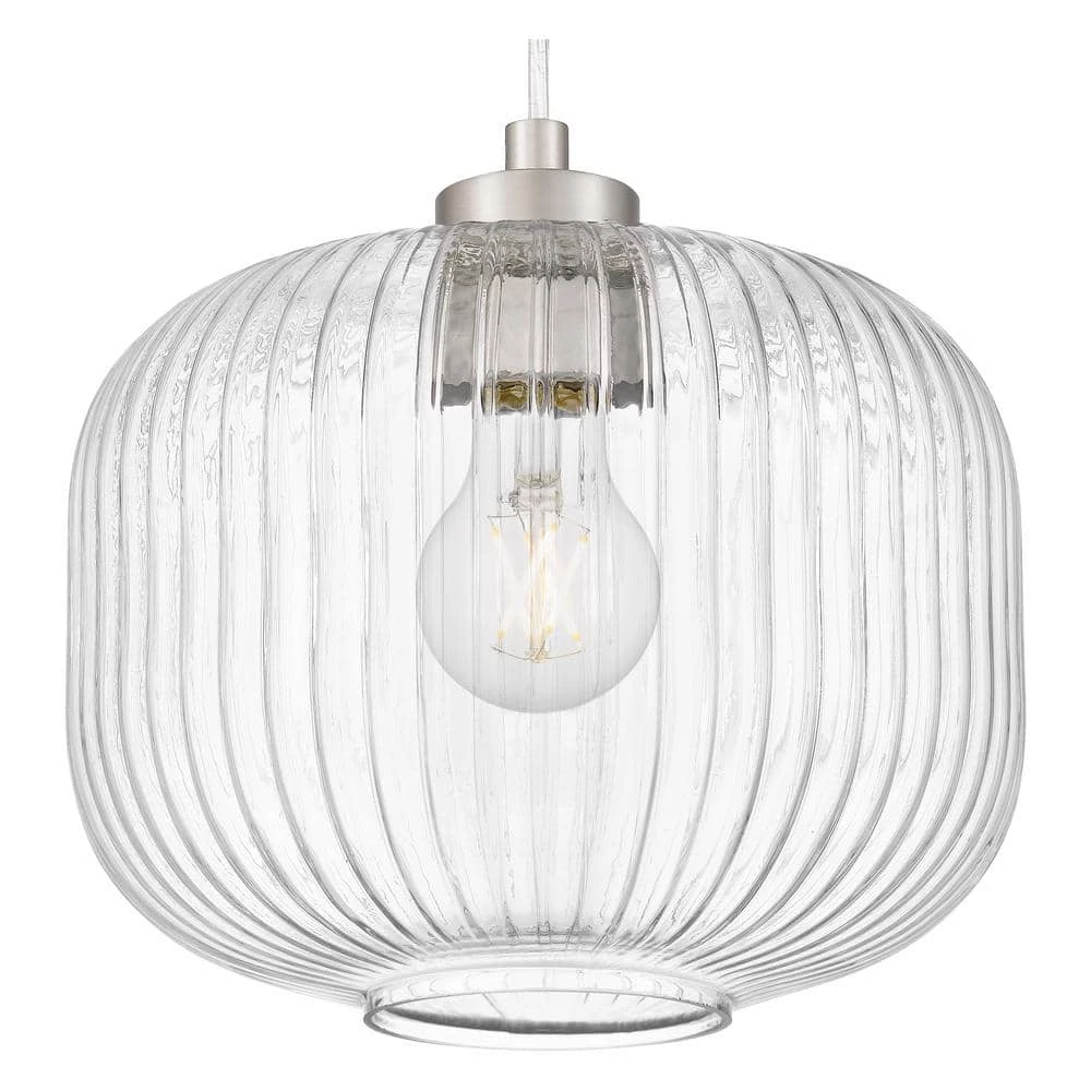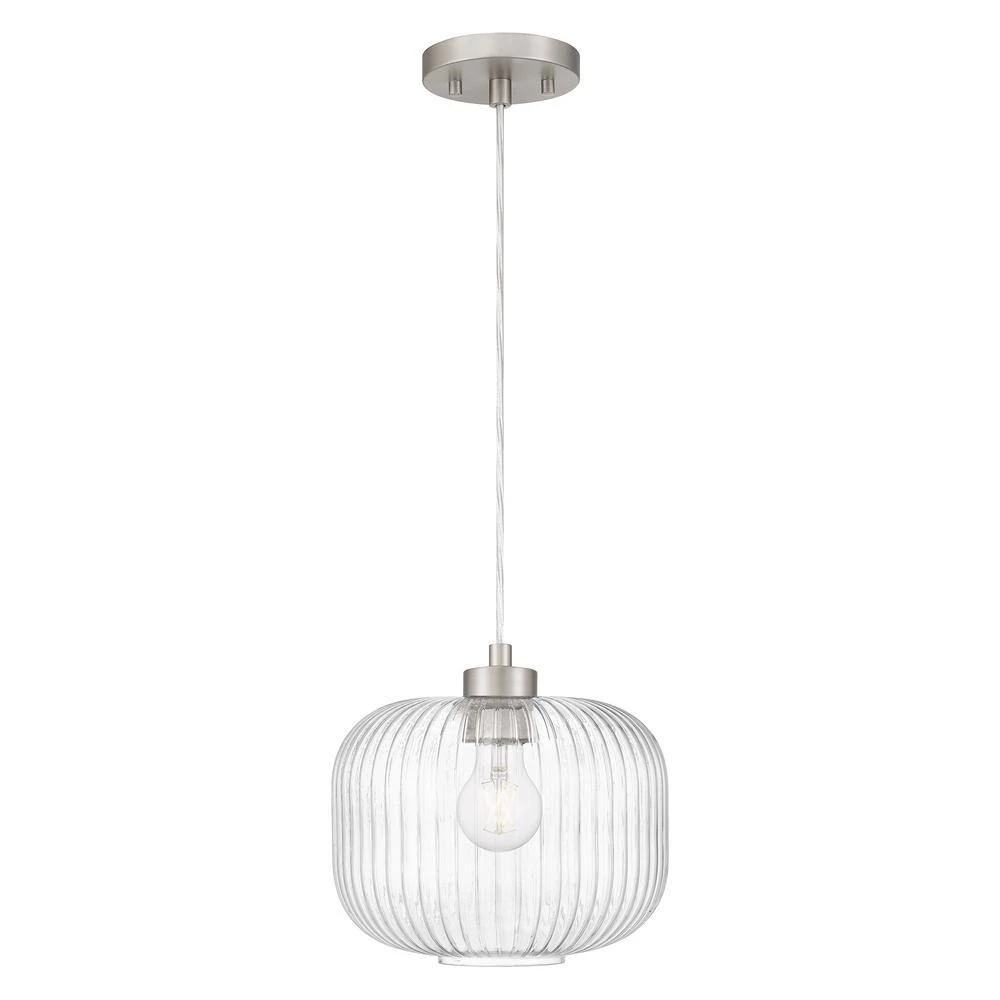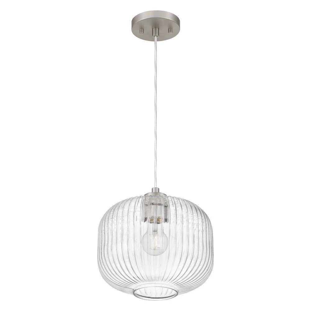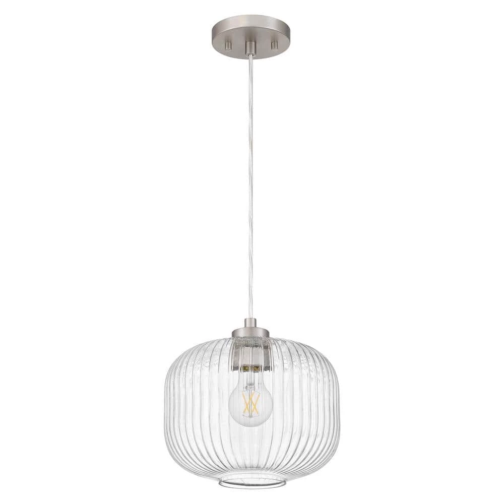 This transitional mini pendant features a brushed nickel finish with a fluted clear glass shade. Ideal to be hung by itself or in a set to complement any room. Adjustable cord makes this mini pendant perfect for high or low ceilings. Available in brushed nickel and matte black finishes.