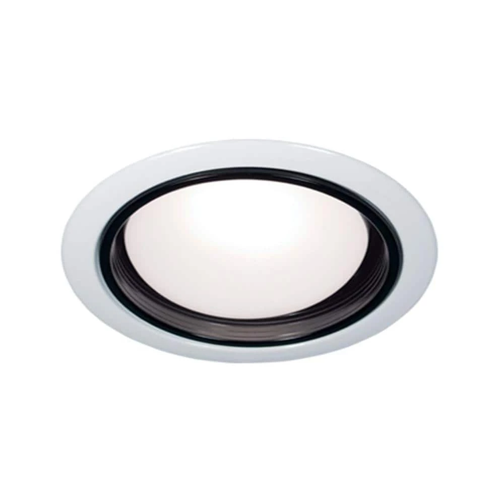This elegant white fixture with a black baffle is sure to showcase any location. Rated for both interior and exterior use. Ideal for exterior locations placed in the soffit.