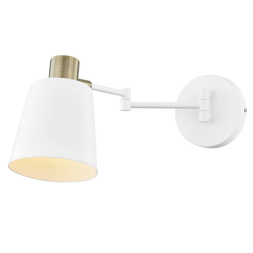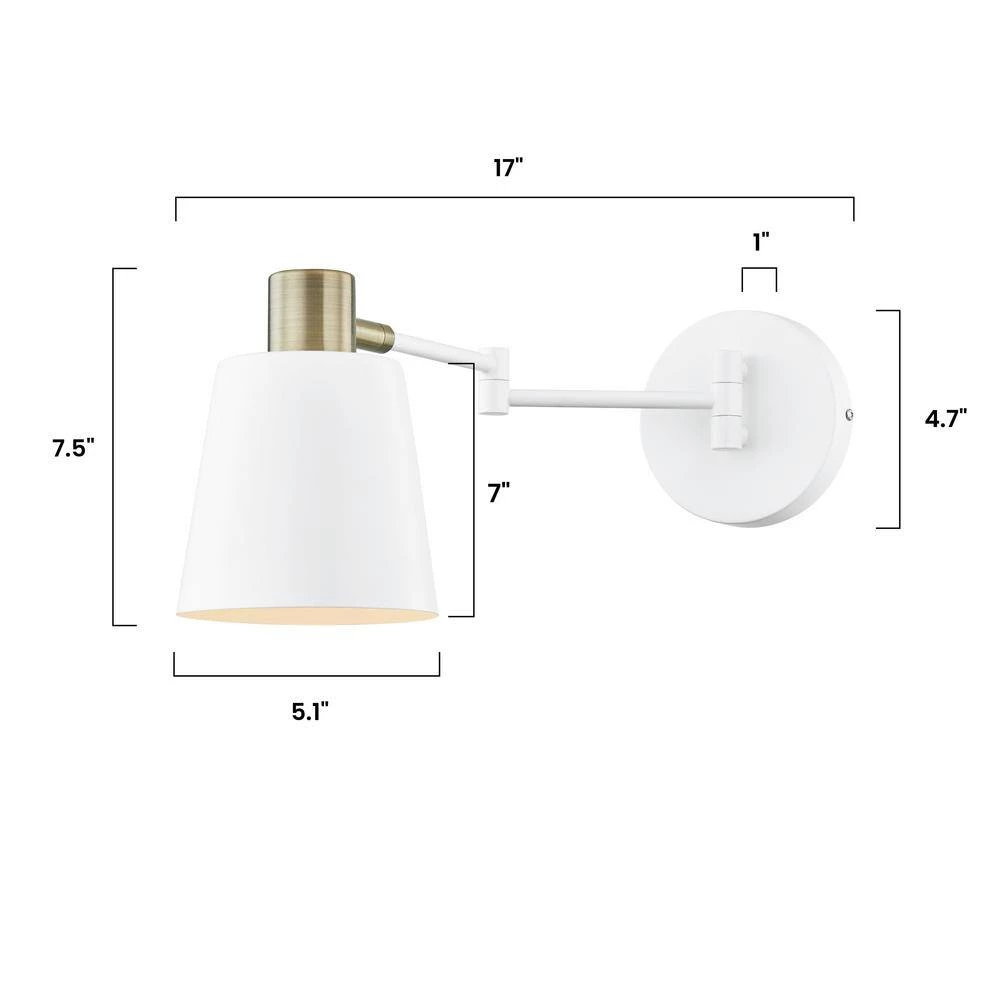 A quintessentially modern interpretation, our Alexi Wall Sconce instantly elevates your home lighting scheme. A gently flared shade and round base showcase crisp lines while a brushed antique brass accent infuses sophisticated appeal. Adjust the shade up or down and swivel the dual-jointed arm left or right to achieve flawless brightness for your workspace or relaxing space.