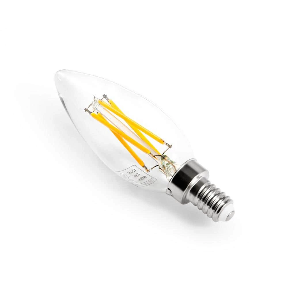 - Fully dimmable C32 LED filament bulb with medium E12 base