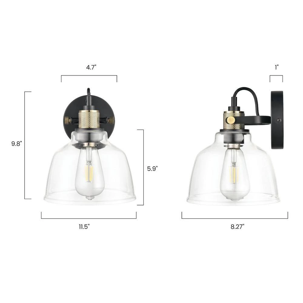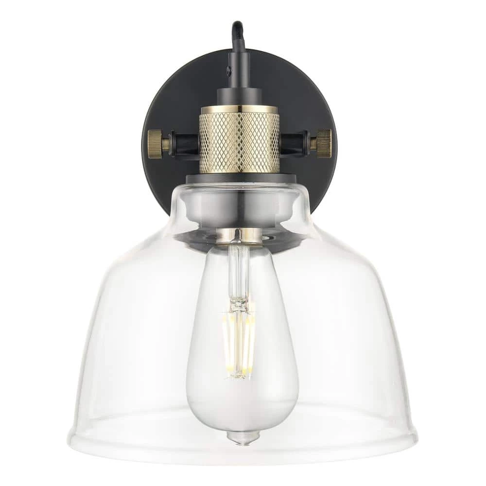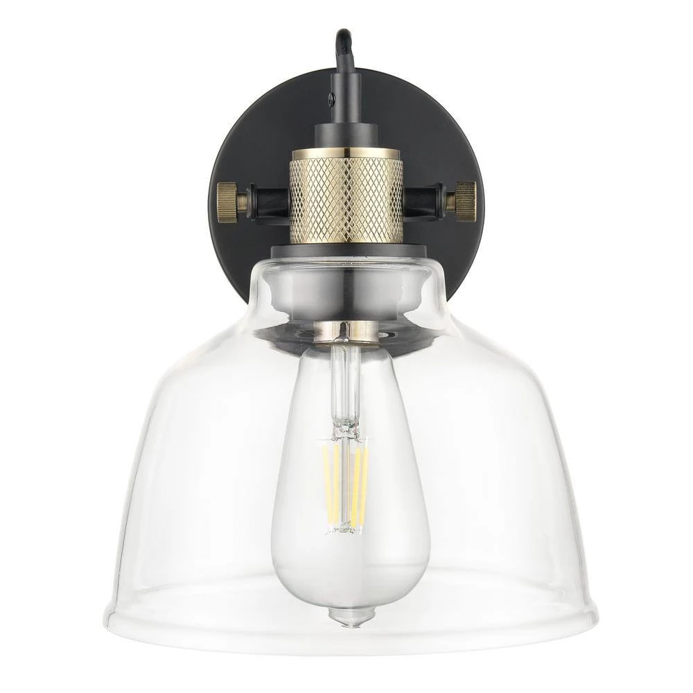 Bring industrial chic to your home with our Arie Wall Sconce. Clear glass mixed with black and brass demand attention and elevate the style factor in any room. This wall sconce will bring a demure ambiance to an entryway, library or lining a hallway- and you’ll love your powder room even more each time you’re graced with this sconce’s presence.