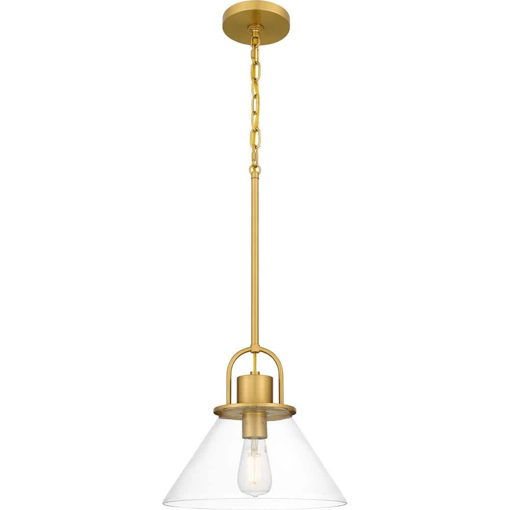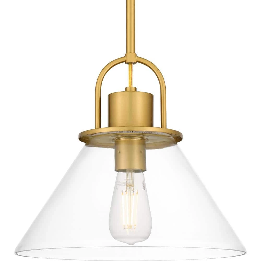 The Balfour 1-light gold pendant is the perfect addition to any living space. Finished in a plated brushed gold and complemented by a clear glass shade, this light is sure to add unique flair and a wide casting ambient glow. The fixtures adjustable chain allows for a variety of hanging heights depending on your desired look.