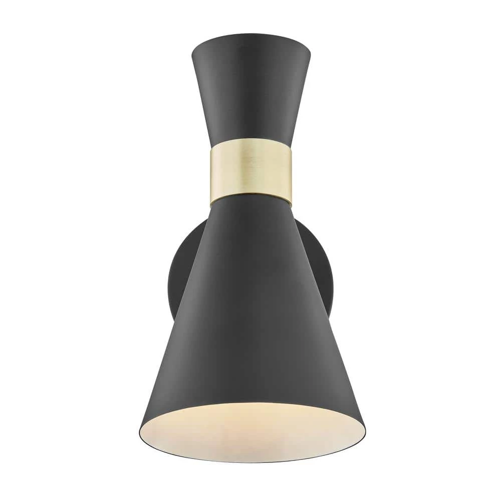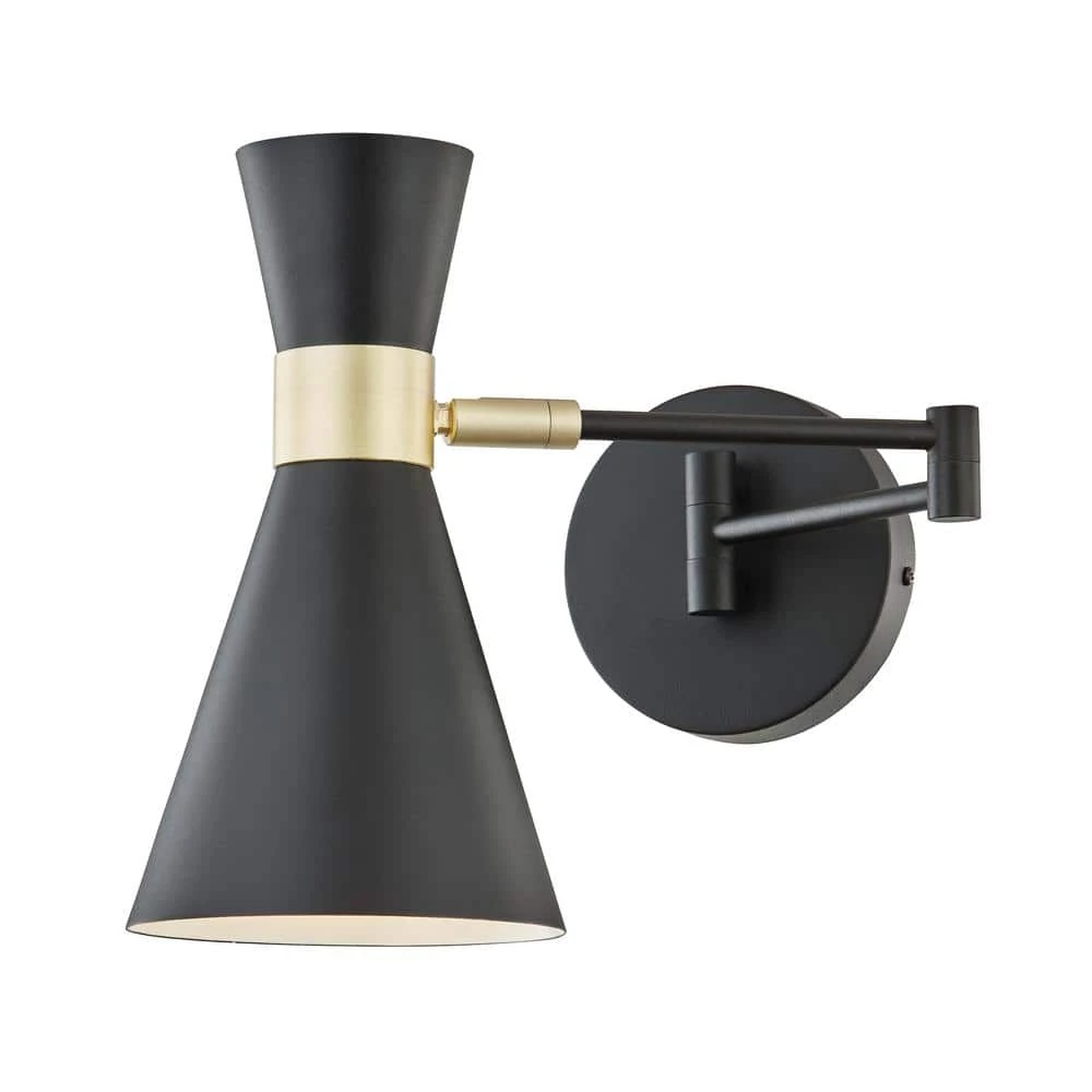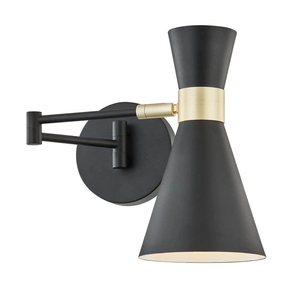 The Beaker Wall Sconce has dramatic genius down to a science with its double flare profile accentuated by a chic band of brushed brass. This elegant iron-crafted piece accommodates the illumination demands of any space with jointed arms which swivel horizontally and a shade featuring vertical swivel capability. Enjoy convenient lighting that performs with flair anywhere, from the dining room to hallway to home office.