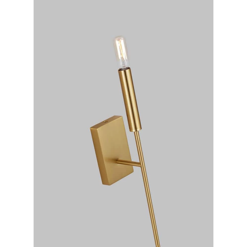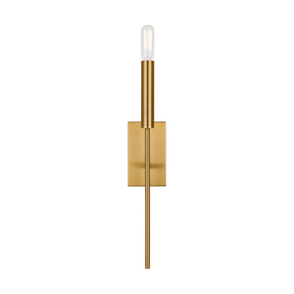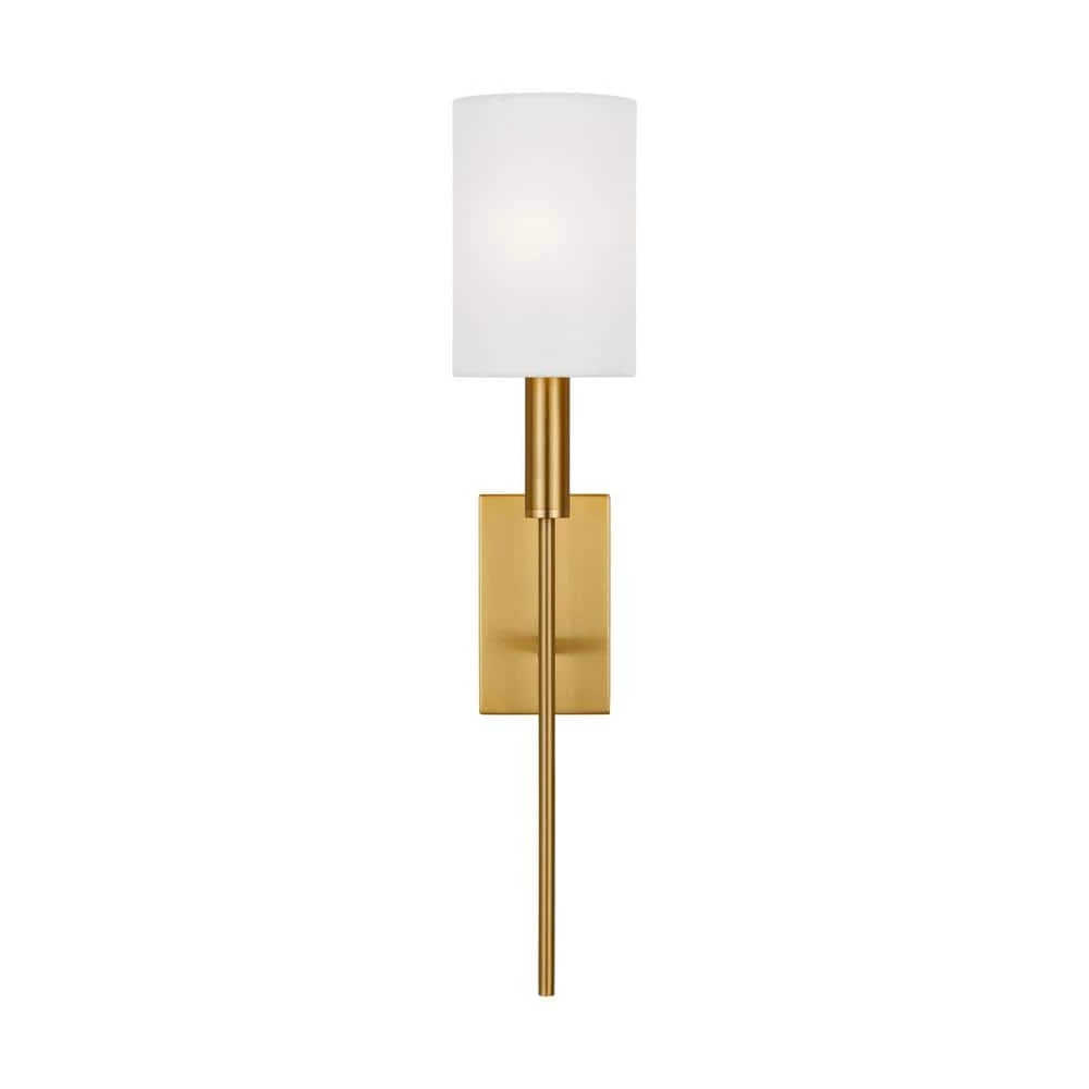 The Brianna 1-light wall sconce by ED Ellen DeGeneres in Aged Iron offers shadow-free lighting in your powder room, spa or master bath room. Brianna’s graceful, seamless curvature and elongated tubular arms lend fluidity and modern appeal to this classic minimalist silhouette. Available in rich Aged Iron, Burnished Brass and Polished Nickel finish. Brianna wall sconces include cylindrical shades in fresh White Linen. We are expanding this top selling series by ED Ellen DeGeneres to include a tail sconce in three finishes.