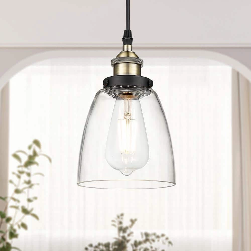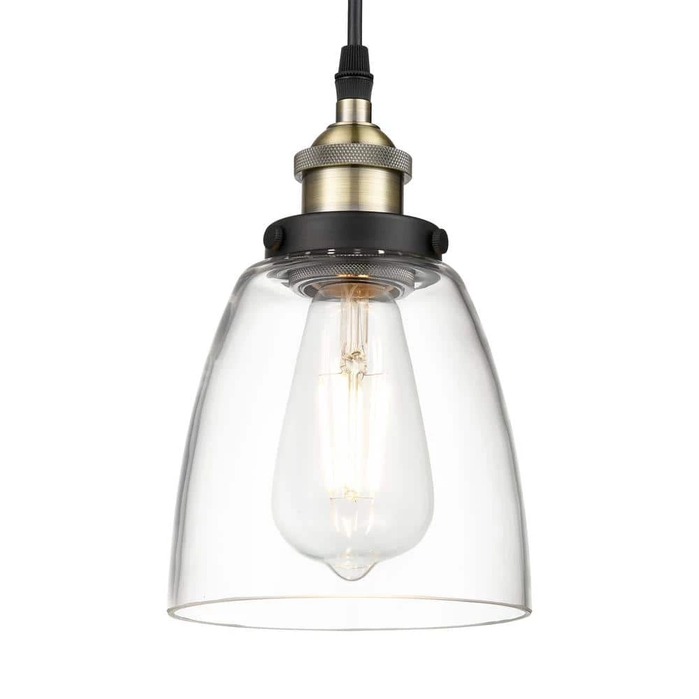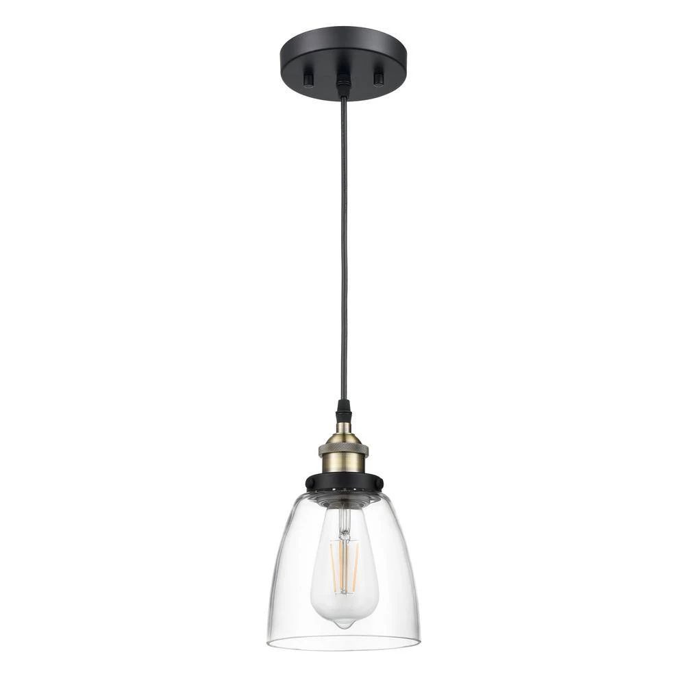 Chic curves and an exposed bulb bring contrasting style elements to the Camberly Pendant Lamp. Delivering beautiful lighting to any room, this pendant features matte black and bronze finishes to perfectly complement its clear glass shade. Boasting a graceful silhouette, the lamp creates a rich, warm ambiance in your space. Not included, an Edison-style bulb does wonders, and brings vintage character, to the Camberly. A matching sconce is also available, allowing you to create a coordinated look.