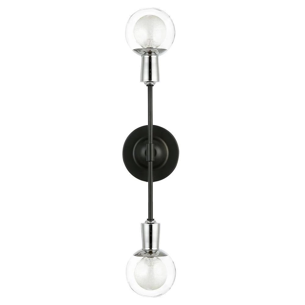 With the Cellini 2-Light Wall Sconce, the design is in the details-particularly the threaded-glass bulbs, which create an impressive sense of texture. We also love the metallic accents and the crisp, cool painted-black iron frame that goes with anything. Grab a pair of these to make a striking statement on either side of a sofa or a bed.