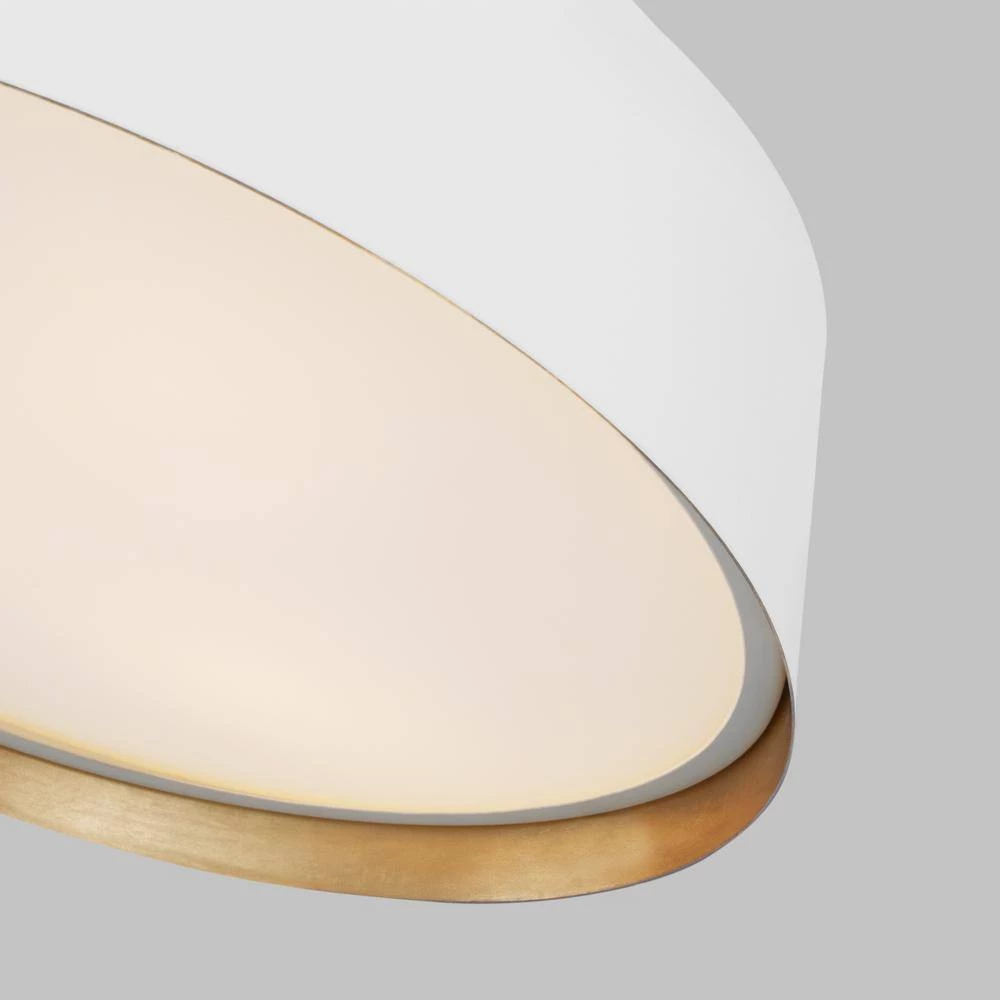 The Asher is contemporary with time-honored appeal in a low profile, yet large-scale silhouette that exudes understated elegance. Available in either a Midnight Black or Matte White exterior finish, both versions utilize an artisanal, hand-applied treatment of real gold leaf that lines the interior of the shade while a silk screen glass diffuser softens the illumination. Unique screw-less construction gives the appearance of the diffuser being suspended gently within the shade.