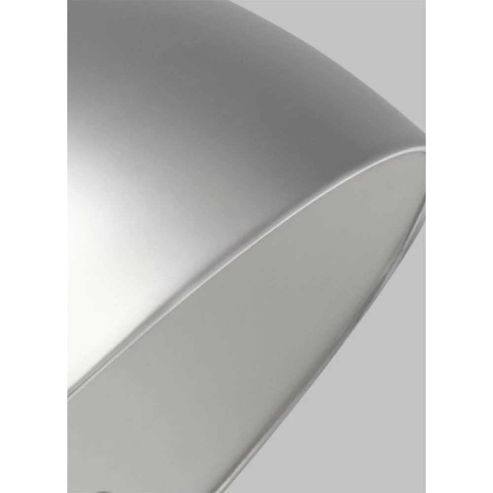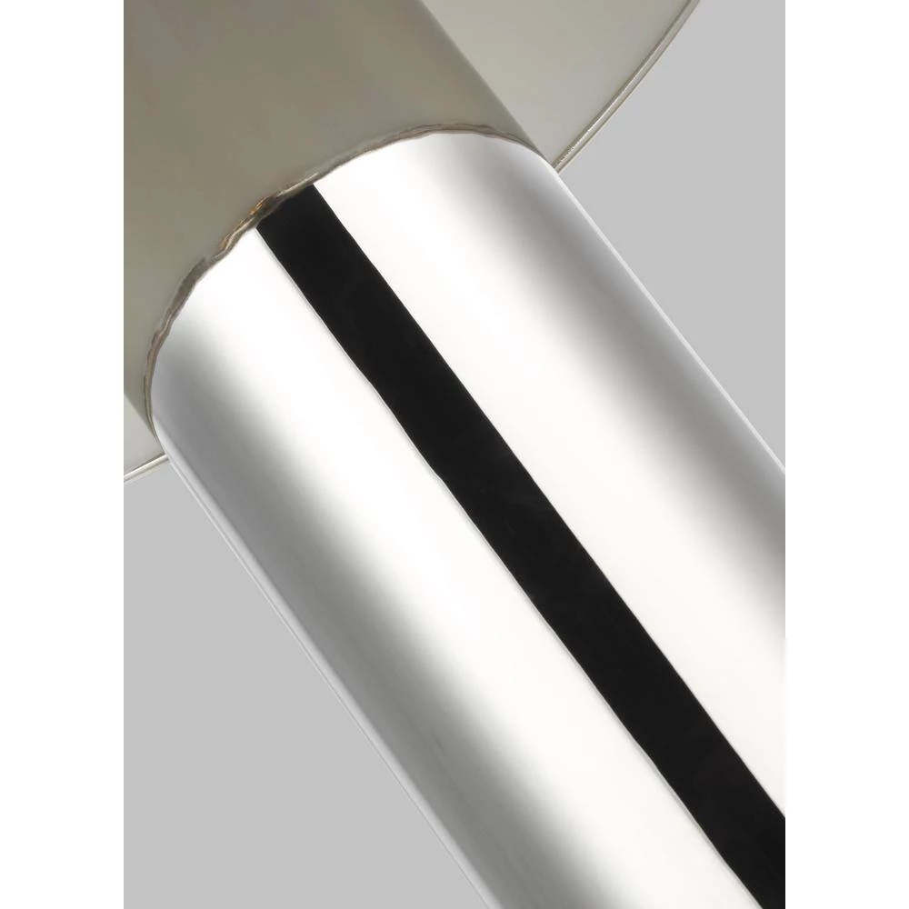 - Spun metal shade sits atop the modern design to complete the geometric appeal