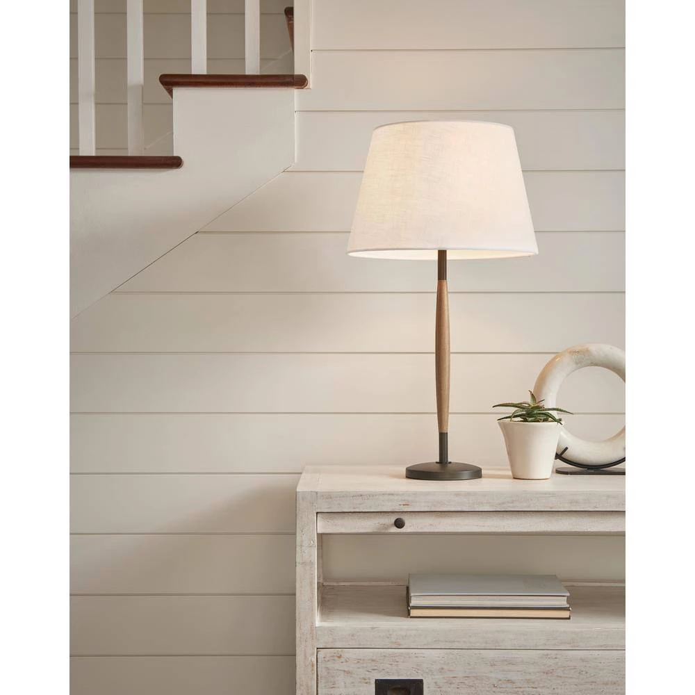 Ferrelli’s rustic, 2-toned finish combination of Aged Pewter metal with warm Weathered Oak Wood accents draws from the warmth of nature with a bit of rustic flair. These sleek statement lamps are available in 2 sizes: a 61 in. floor lamp or a 18 in. table lamp. They include a White Linen shade.
