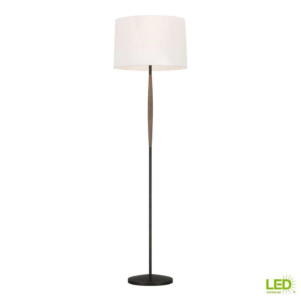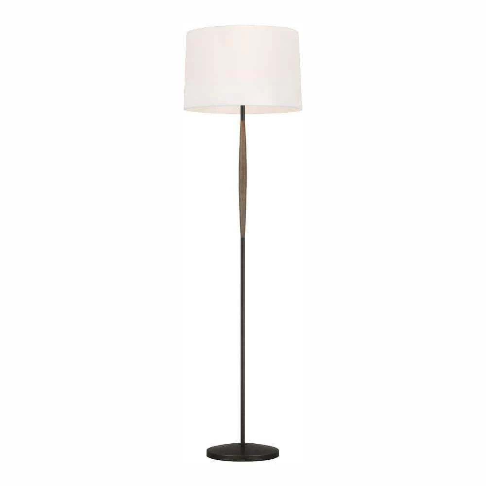 Ferrelli’s rustic, 2-toned finish combination of Aged Pewter metal with warm Weathered Oak Wood accents draws from the warmth of nature with a bit of rustic flair. These sleek statement lamps are available in 2 sizes: a 61 in. floor lamp or a 18 in. table lamp and include a White Linen shade. The base diameter is 10.5 in.