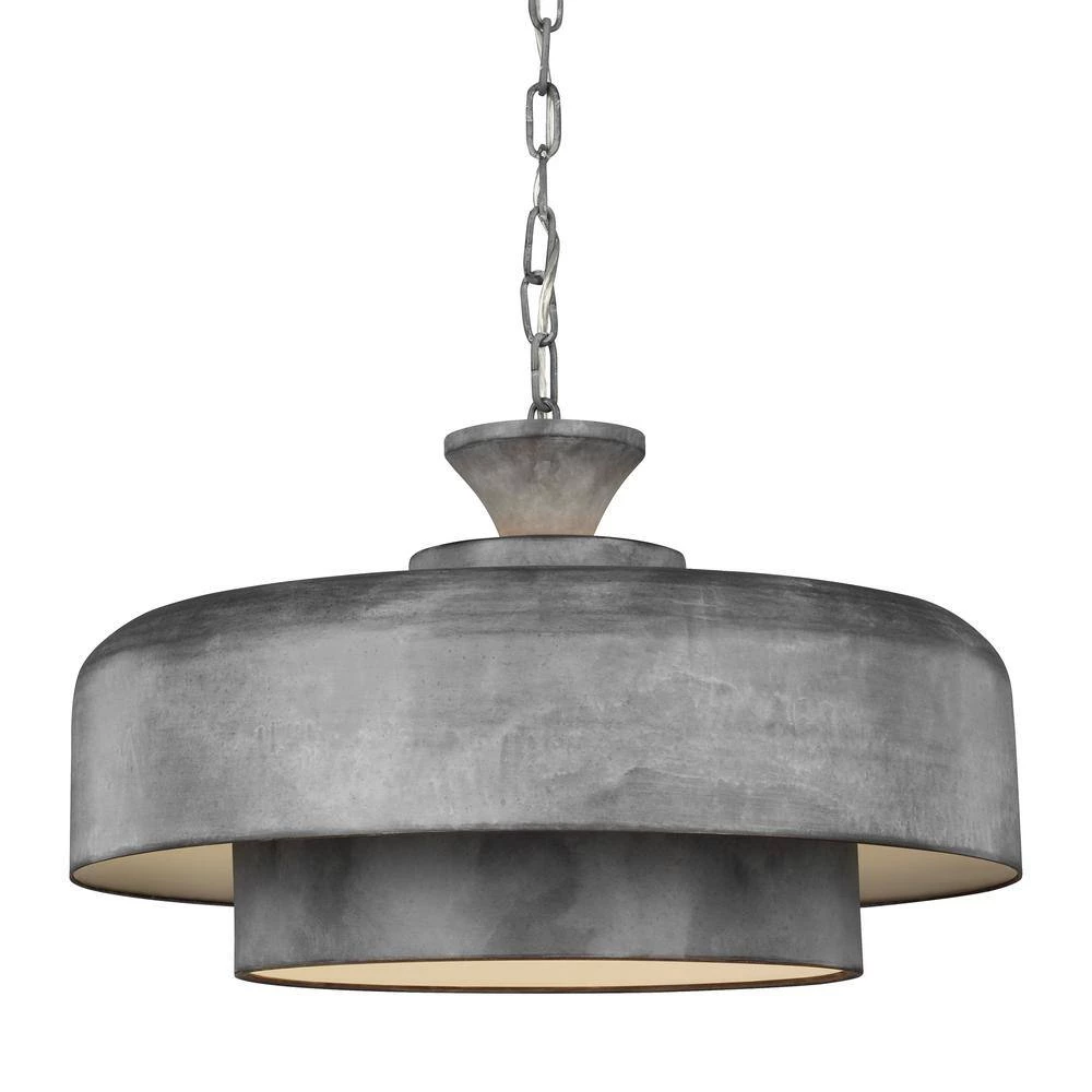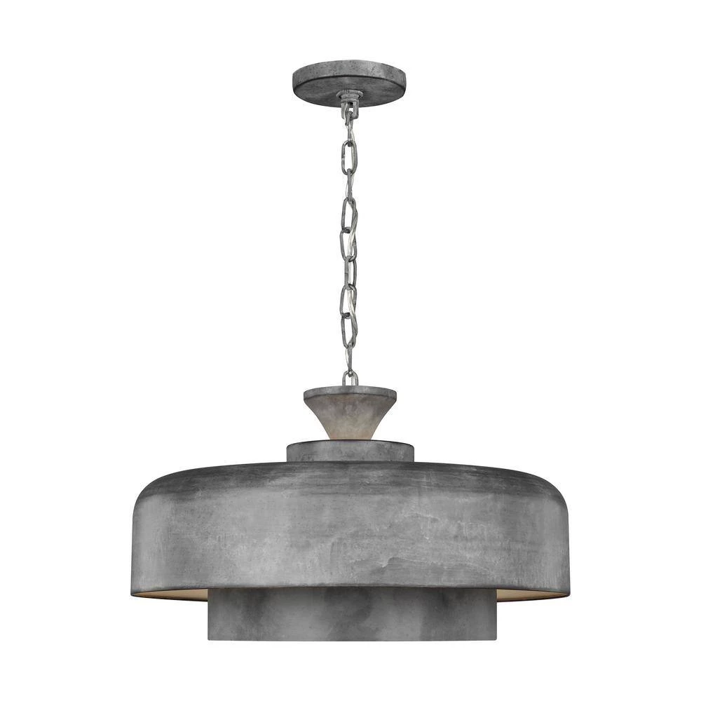 Mid-century design meets touches of rustic and industrial in the handsome Haymarket pendant. Layered concentric tiers constructed of cast metal add depth and dimension while a painted white interior catches the light. The artisanal hand-applied Weathered Galvanized finish recreates the authenticity of vintage industrial fixtures.