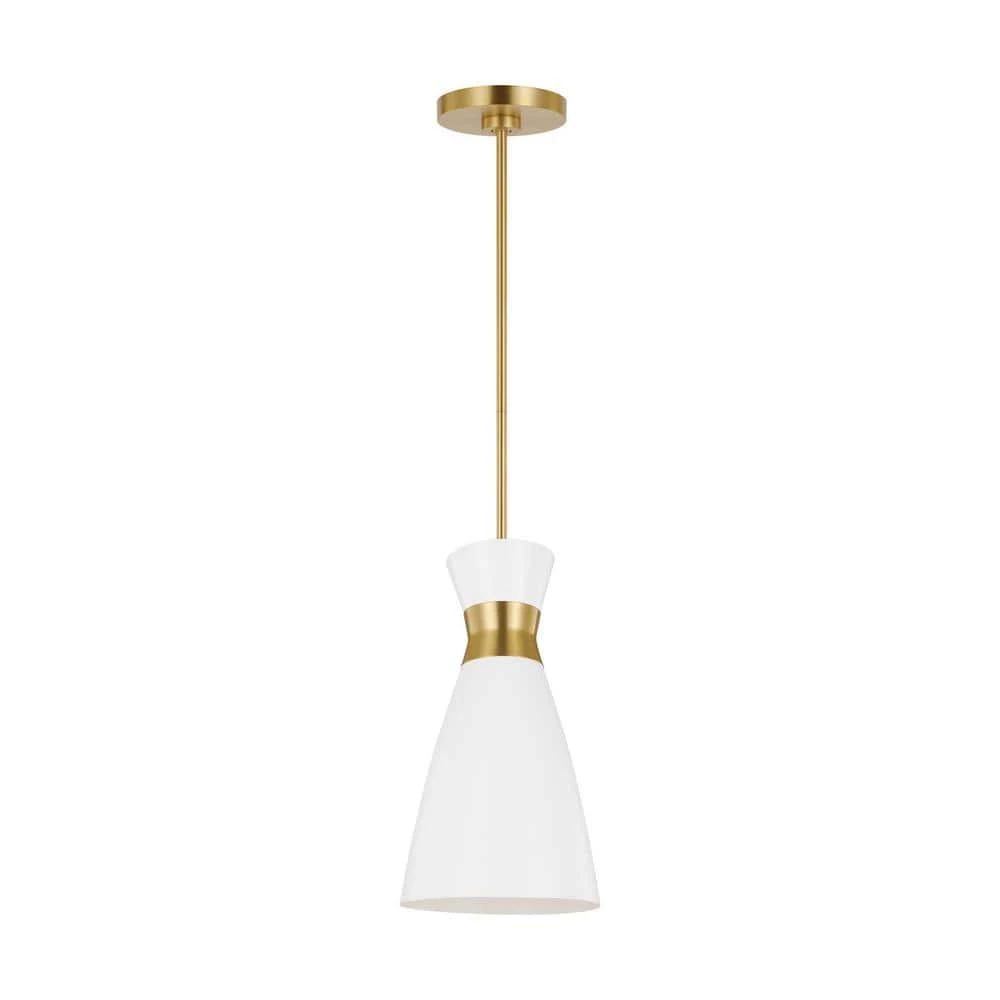 The Heath modern mid-century collection of pendant lights from ED Ellen DeGeneres Crafted by Generation Lighting is offered in 2 finishes including Burnished Brass and Polished Nickel. This collection offers the refinement of luxe materials that move beyond function, with brass details that contrast with its white shade. The conical body shape is crisp and minimalist, yet makes a striking statement in any room. Our partnership with ED Ellen DeGeneres originates from a shared passion for interior design and an appreciation for Relaxed Mid-Century and Rustic Modern designs. The products are influenced by some of Ellen’s favorite, world-renowned artists and feature signature details that are inspired by Ellen’s own treasured pieces throughout her homes.