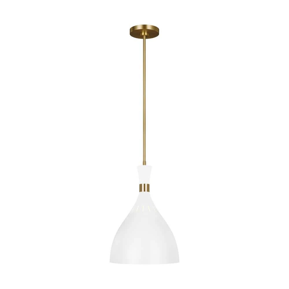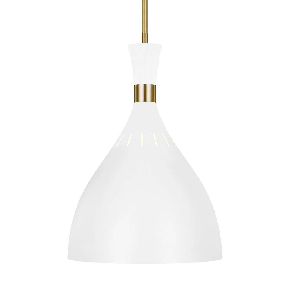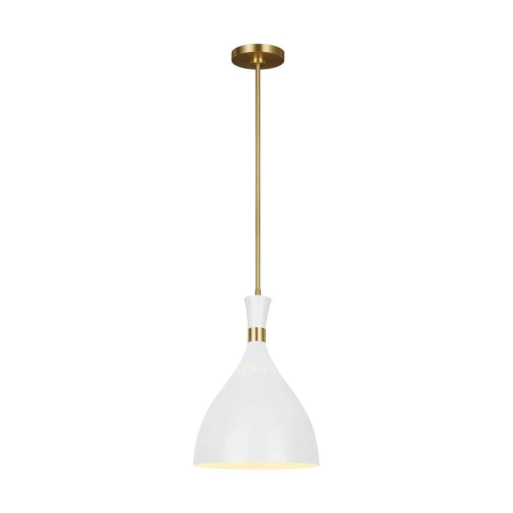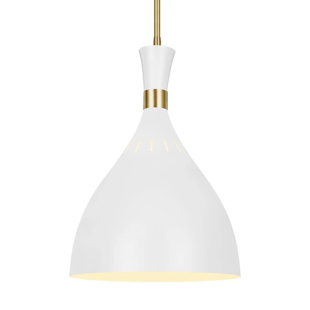 Pairing a rich, two-tone finish with bold, geometric lines give Joan luxe appeal. Warm Burnished Brass joins with either Midnight Black or Matte White in a thoughtful juxtaposition of contrasting finishes. Each iconic, hourglass-inspired shade features small perforations towards its crown, allowing a soft glow to shine through, further articulating the distinctive details of this chic collection.
