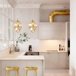 - Oversized pendants offered in 2 sizes and 2 finishes: burnished brass and polished nickel