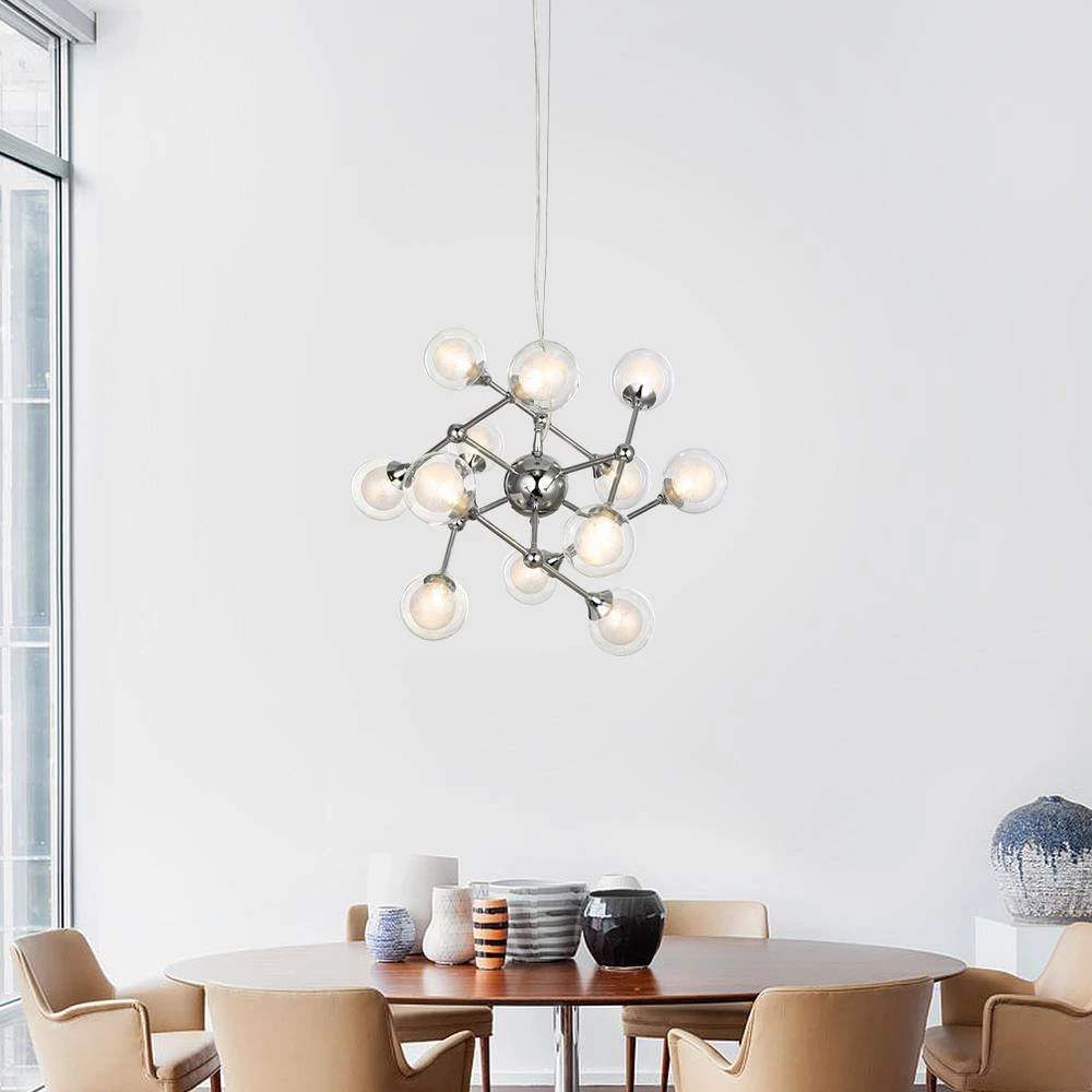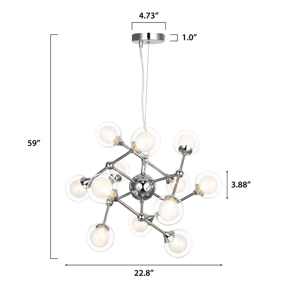 The Ghent 12-Light Chandelier is out-of-this-world gorgeous. Its structured metal frame supports a dazzling constellation of twelve glass globes, which throw ample light across whichever room it hangs. The globes, which are made of threaded-glass for an inviting sense of texture, are LED compatible and the fixture is fully dimmable.