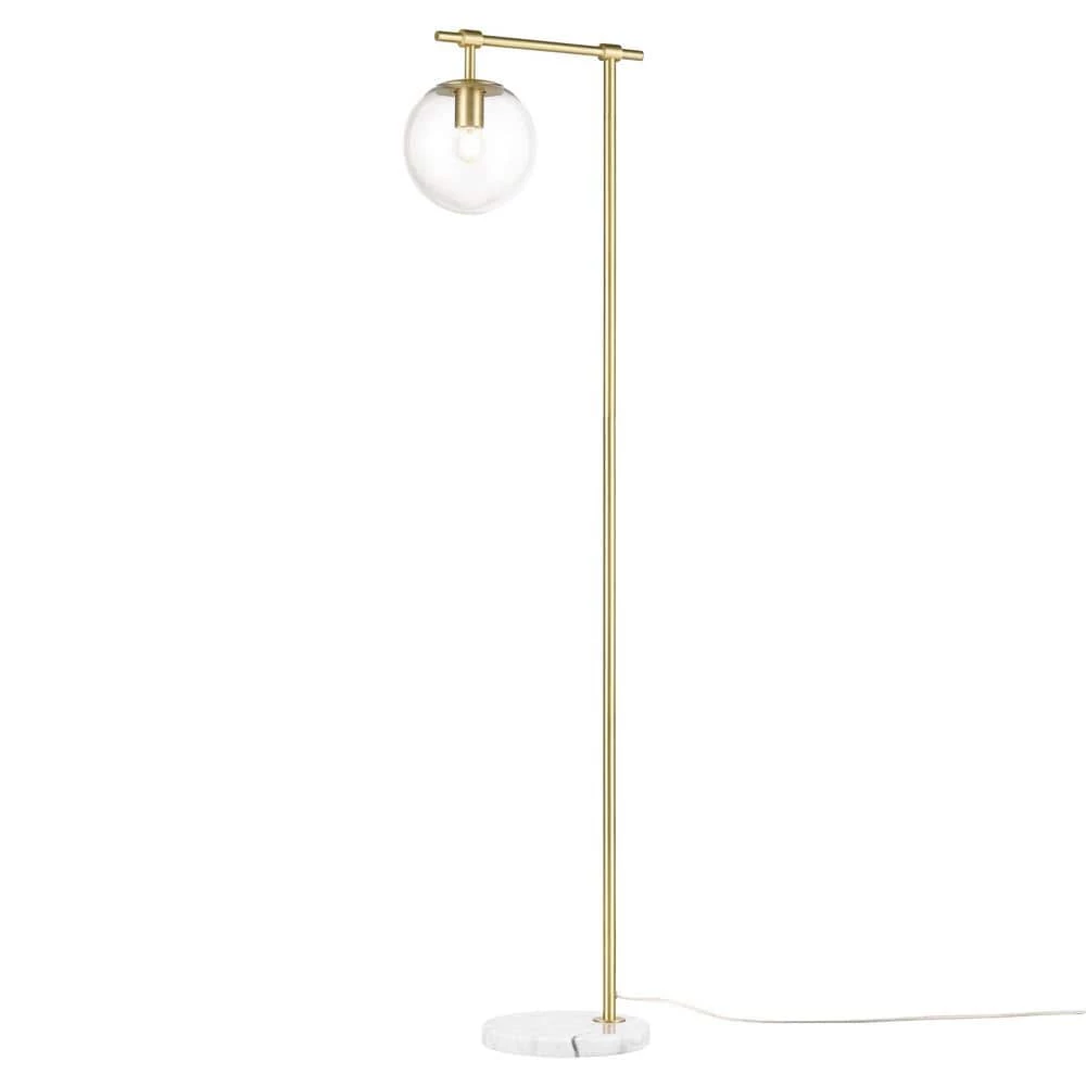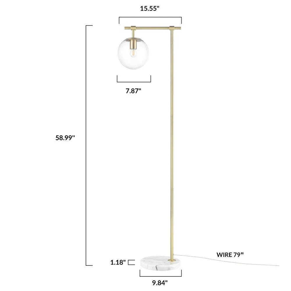 Crafted from glass and marble, the Graciana Floor Lamp doubles as a statement piece thanks to its geometric silhouette and brushed brass finish. The clear dome is perfect for showcasing great lighting to any room. Recommended for indoor room only.