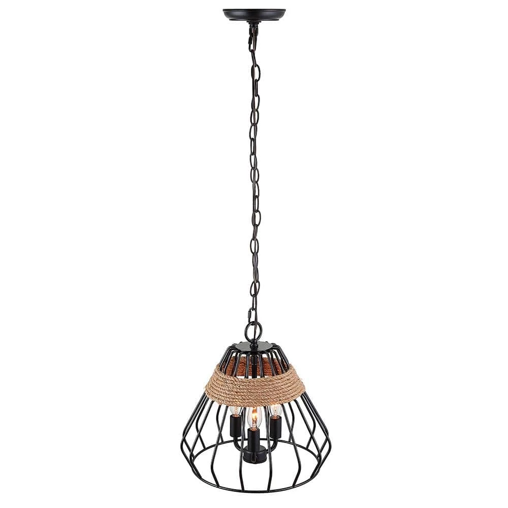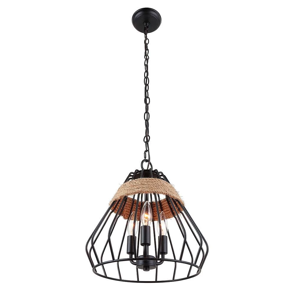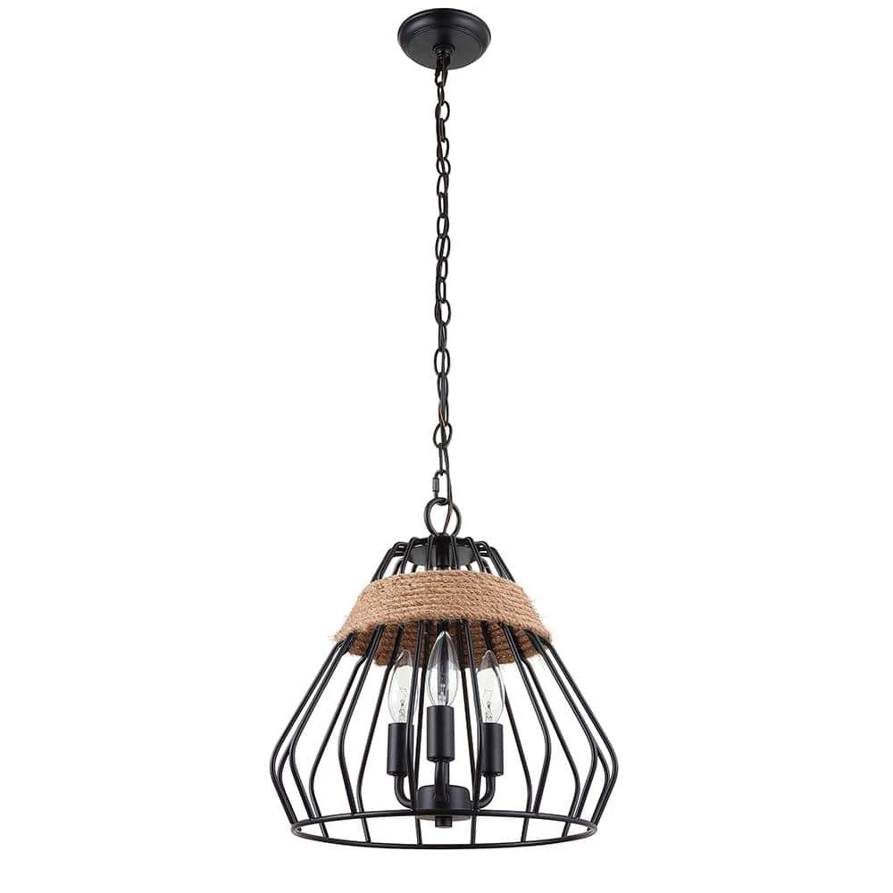 Let this attractive convertible 3-light pendant light illuminate your way in farmhouse style. Features a black finish with jute rope accents providing the perfect balance between industrial and farmhouse design influences. Candelabra bulbs (not included) lend a nostalgic glow and radiate through the cage style design. Can be hung as a pendant or semi flush.
