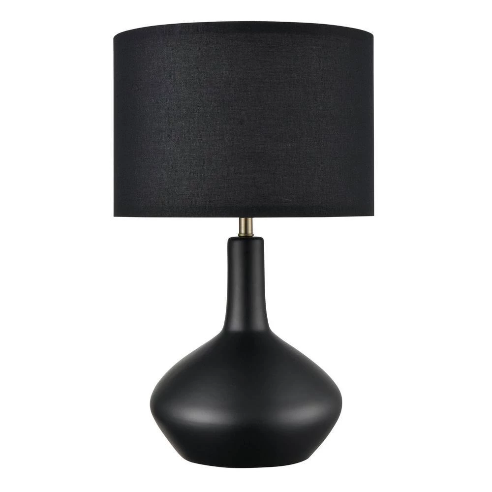 Add a little drama. Featuring a modern, tone-on-tone look, the Kurvena Table Lamp features a sturdy, ceramic base and linen-wrapped drum shade. Choose from an all black or all white finish.