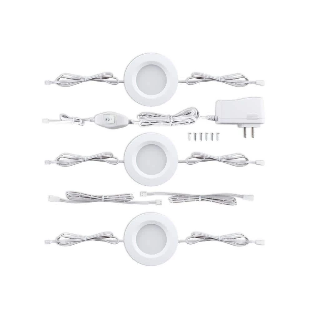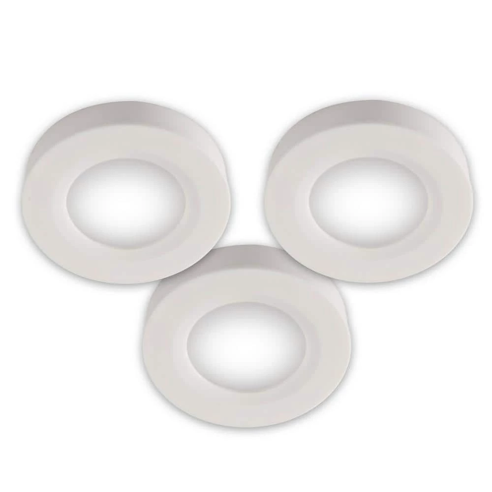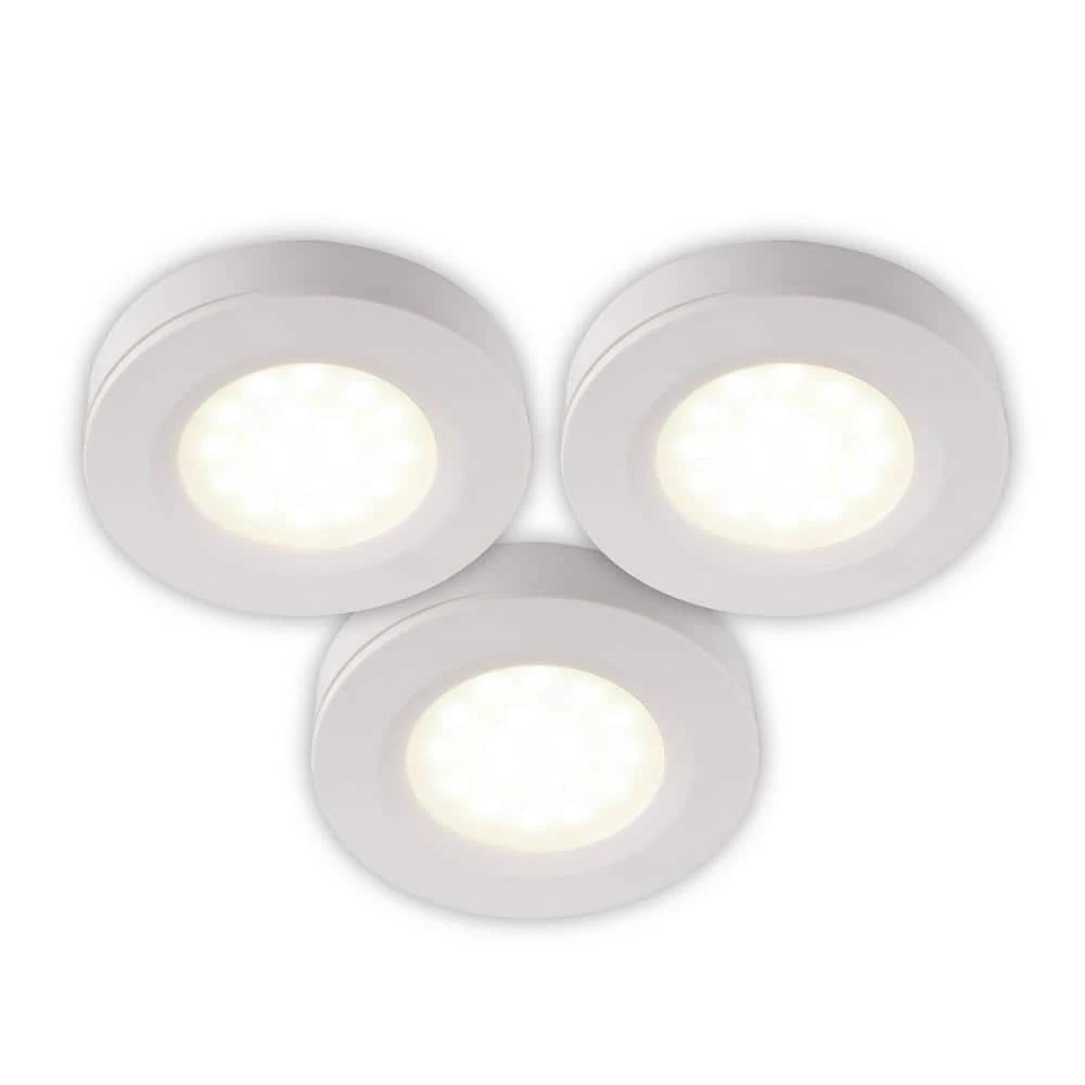 BAZZ 3-Pack LED white pucks for under-cabinet use. These units have 360 Lumens and are linkable. Perfect for long lasting, energy efficient utility lighting.