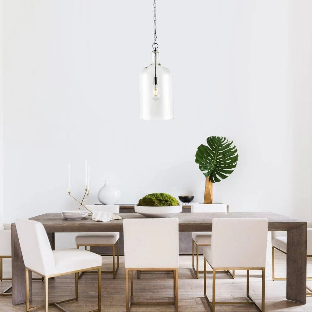Shed some light on your dining table or kitchen island with our classic Mia Pendant Light. Crafted from iron and glass, this jug-shaped pendant is updated with a sophisticated chrome finish, and a matching chain that lets you control and adjust its drop from the ceiling. We love how its simple good looks would suit any setting, from traditional to modern.