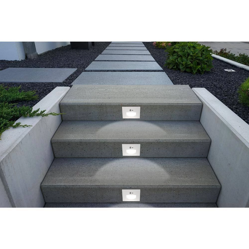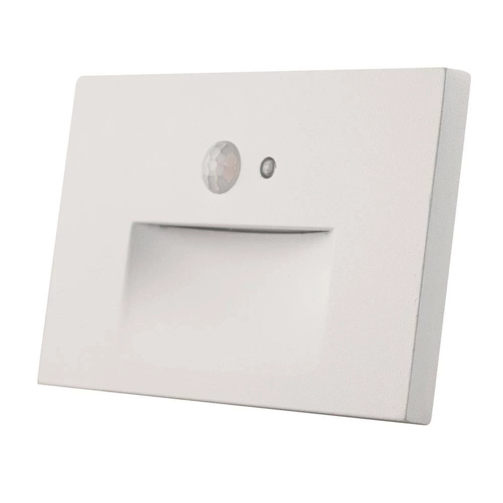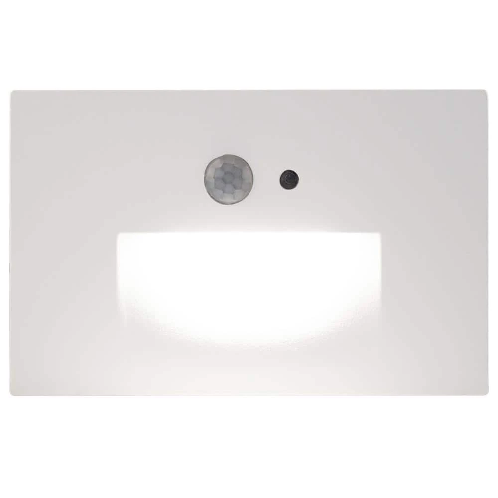 Lend your stairwell or hallway a modern, functional accent with this integrated LED wall recessed fixture from BAZZ. Featuring built-in light and motion detection, it can be set to turn on and off based on movement or when the sun sets for exterior applications. Designed to be installed next to insulation and with a life expectancy of 30,000-hours, you can be confidant this will be a fixture of your home for years to come. This Integrated LED recessed fixture from BAZZ can be mounted vertically or horizontally . These fixtures are rated for direct contact with insulation. Suitable for all interior, exterior and wet applications – 2.5-Watt – 125 Lumens – 3000K.