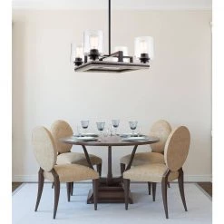 Charleston 17.50 in. 4-Light Black and Faux Wood Chandelier with Clear Glass Shades by DSI LIGHTING