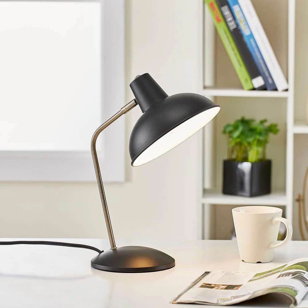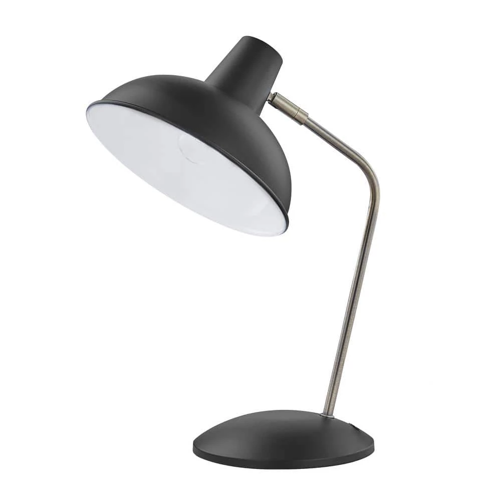 Spotlight your workspace style with a modern desk lamp designed with a clever nod to mid-century aesthetics. Available in your choice of retro tones, our Hylight lamp is crafted of iron with an angled arm and details in an antique brass finish. It features a disc-shaped base and classic flared shade that conveniently rotates vertically and horizontally. Flick the power switch on the cord to shed light on every subject.