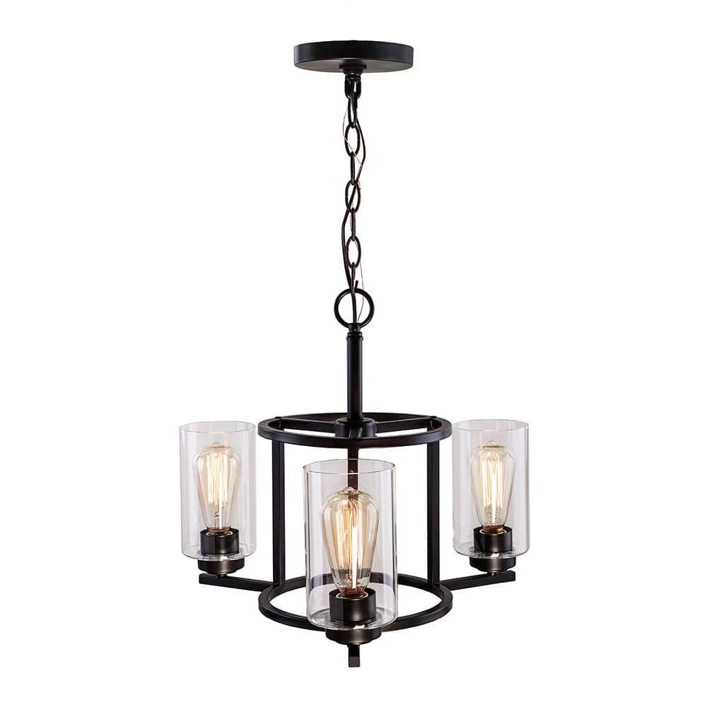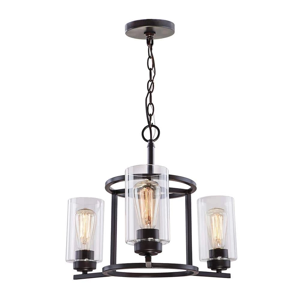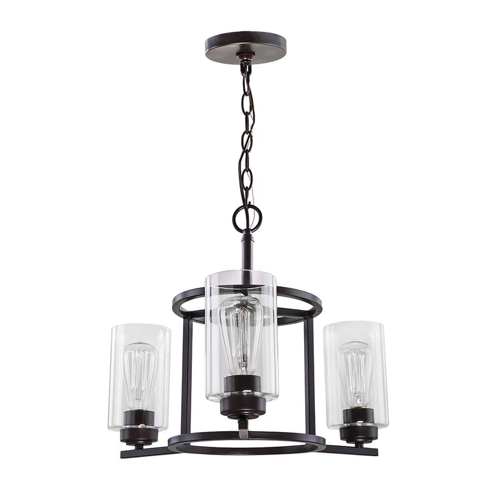 With a sophisticated design, this fabulous 3-light fixture is sure to add that little extra to any room. Features a bronze finish with clear glass cylinder shades. Pair with vintage style bulbs (not included) to add an extra touch of industrial design and style. Adjustable chain for the perfect height every time.