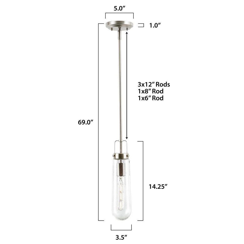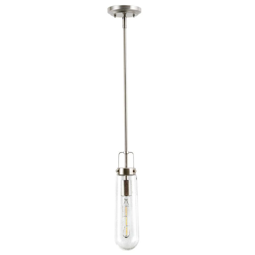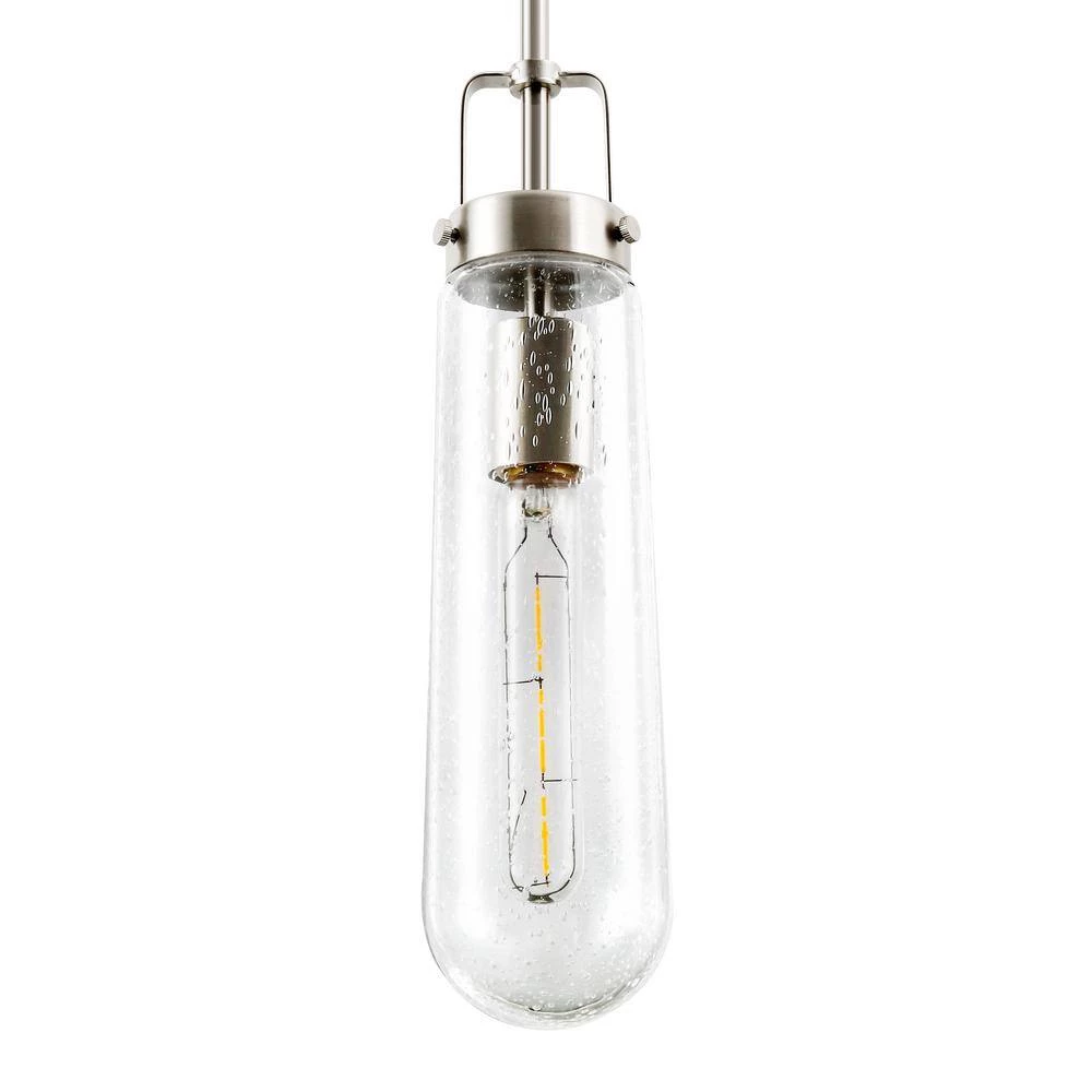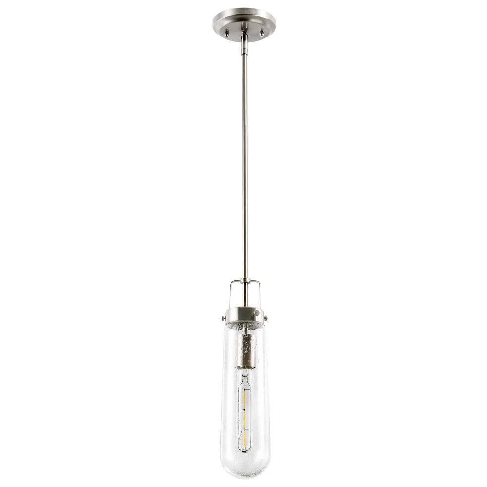 A sleek silhouette with go-anywhere appeal-when it comes to lighting, the Tahoe Pendant Light is tops. From its long, narrow seeded-glass shade to its industrial-chic iron base, this pendant exudes effortless style. Fully dimmable and featuring LED lighting, the Tahoe would make a striking statement in a modern living space.