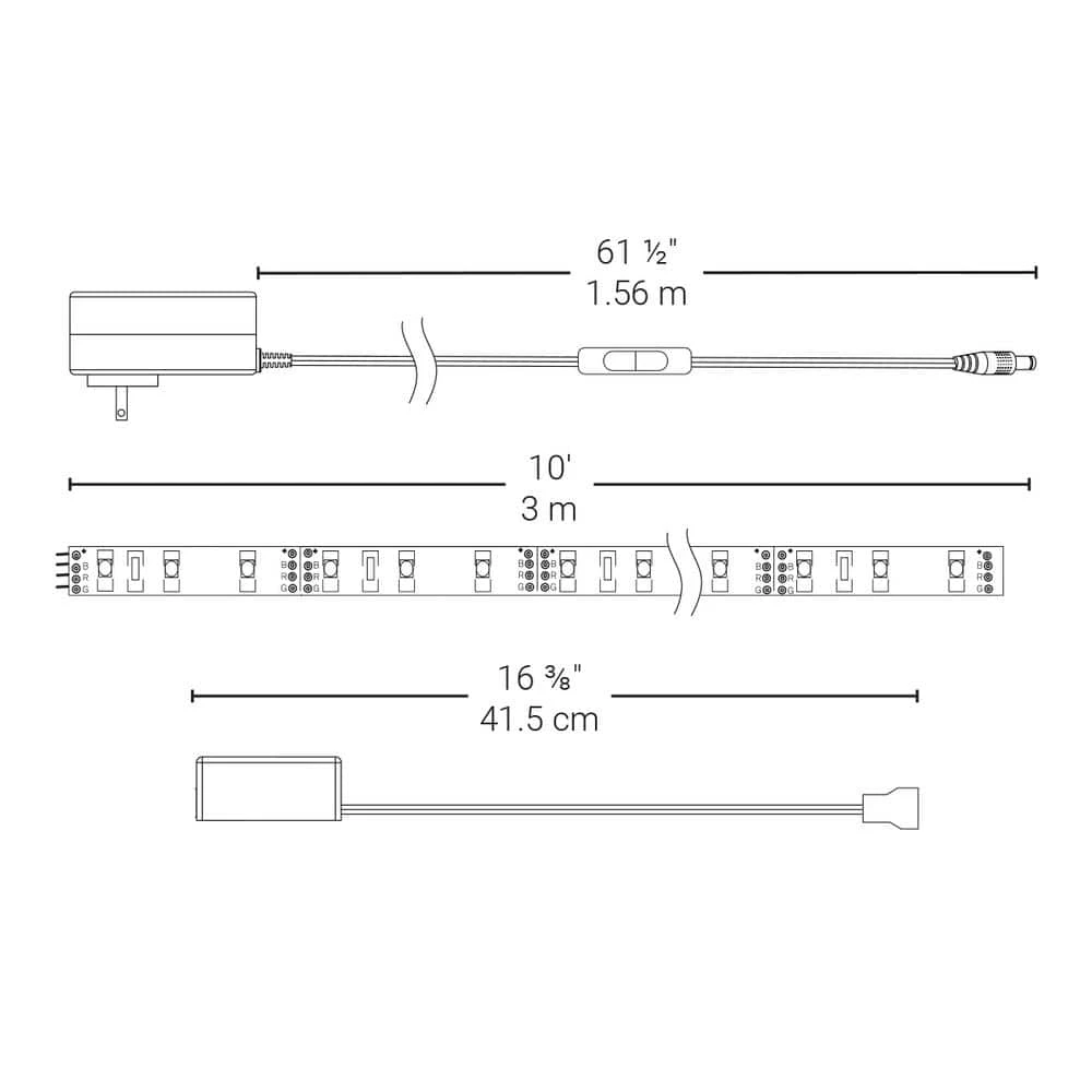 - Includes: 10 ft. strip, 5 ft. plug and 16-3/8 in. connector cable